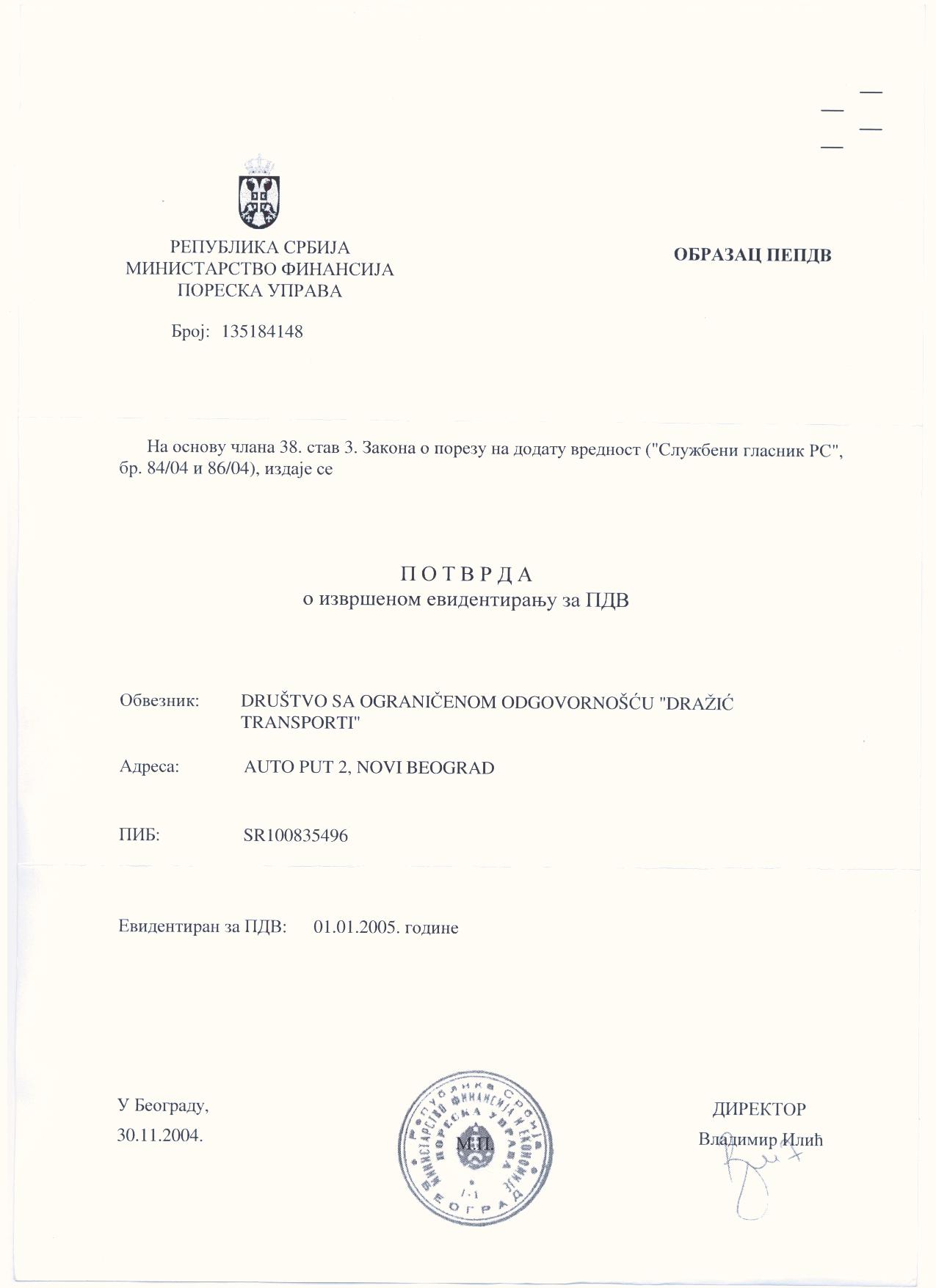 Potvrdu o izvršenom evidentiranju za PDV možete preuzeti ovde